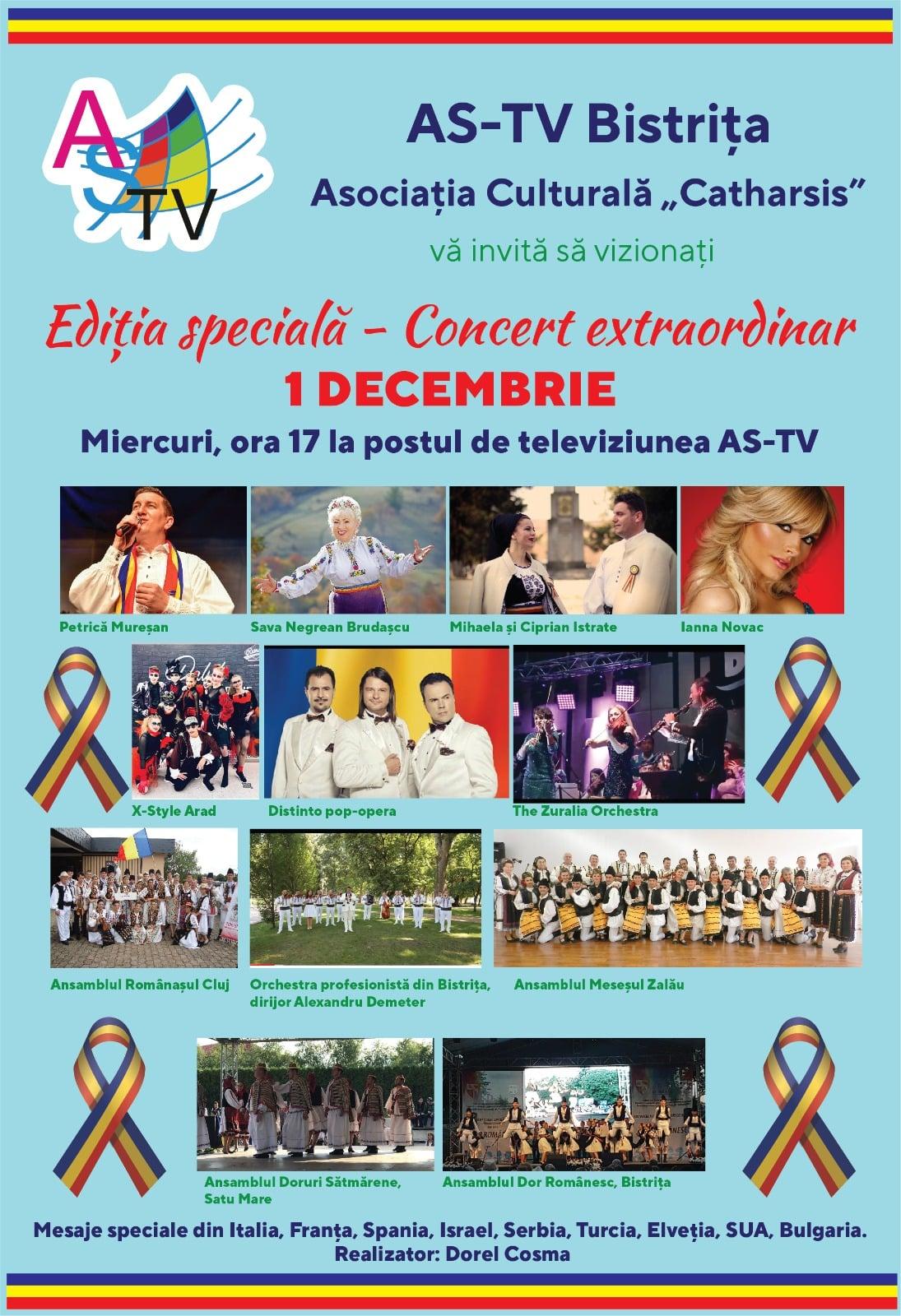 Ansamblul folcloric „Meseșul” al Centrului de Cultură și Artă al Județului Sălaj a fost invitat să participe miercuri, 1 Decembrie 2021, ora 17, la postul de televiziune AS-TV din Bistrița, la un concert extraordinar dedicat Zilei Naționale a României. Detalii, în afișul atașat.