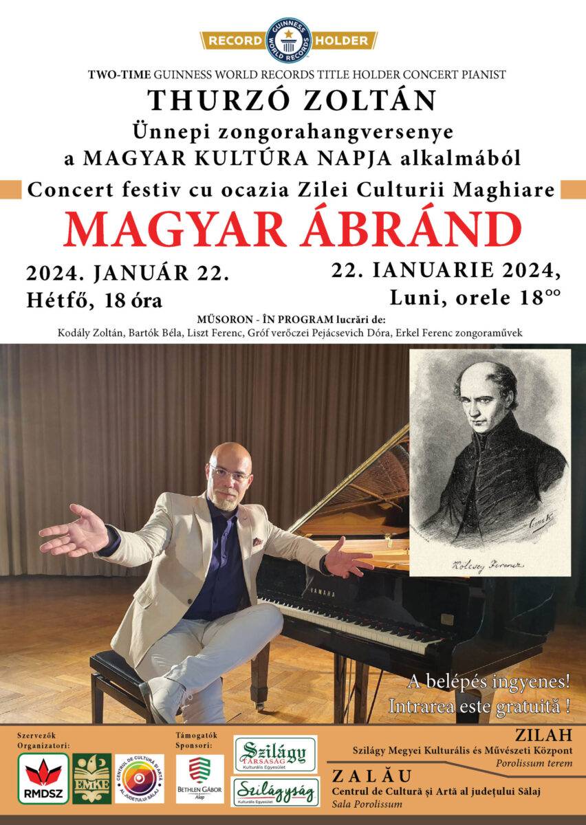 În Sala Porolissum de la Centrul de Cultură și Artă al Județului Sălaj va avea loc luni, 22 ianuarie 2024, de la ora 18, un concert festiv cu ocazia Zilei Culturii Maghiare. Detalii în afișul atașat. Intrarea liberă, în limita locurilor disponibile.