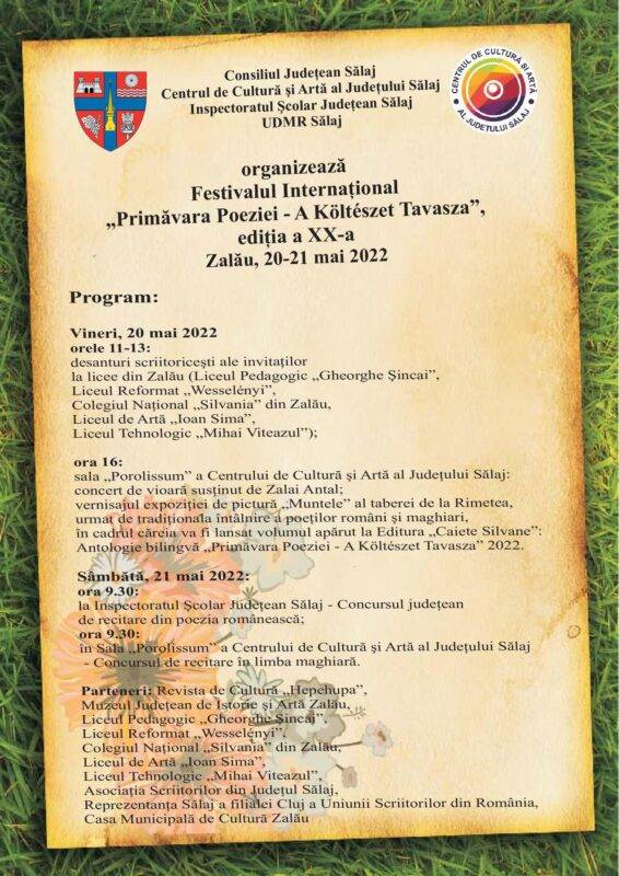 Festivalul internațional „Primăvara Poeziei” – A Költészet Tavasza, ediția a XX-a, Zalău, 20-21 mai 2022