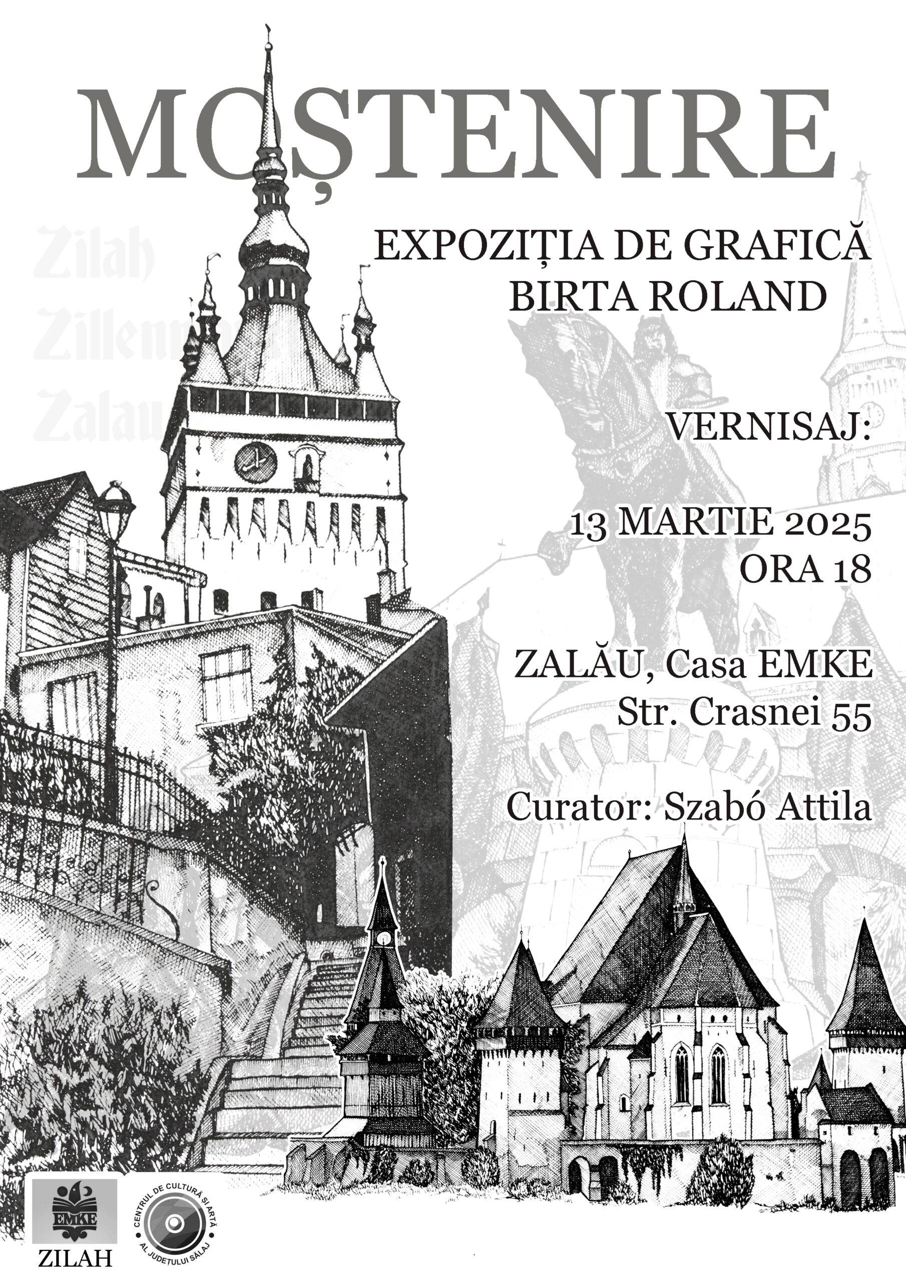 O serie de desene realizate de graficianul Roland Birta din Șimleu Silvaniei vor fi prezentate în cadrul expoziției personale ce se deschide la casa EMKE în data de 13 martie, purtând titlul Moștenire. Desenele abordează tema moștenirii culturale arhitecturale construite în teritoriul regatului maghiar de altădată. Suita de piese parcurge astfel atât stilurile artistice arhitecturale începând cu cea romanică/gotică și renascentistă a evului mediu până la barocul epocii moderne, evocând subtil și diversitatea stărilor de putere politico-administrative ale acelor vremuri: voievodatul, regatul, principatul, imperiul, monarhia. Moștenirea aceasta, aspectele urbanizării timpurii ale orașelor medievale sau monumentele arhitecturale iconice redate în grafică sunt o moștenire evident europeană, demne de a fi cunoscute omului secolului XXI. Artistul își asumă astfel o misiune social-culturală: atrage atenția asupra unor valori ce evocă multă istorie, totodată gustul elevat al omului epocilor trecute.