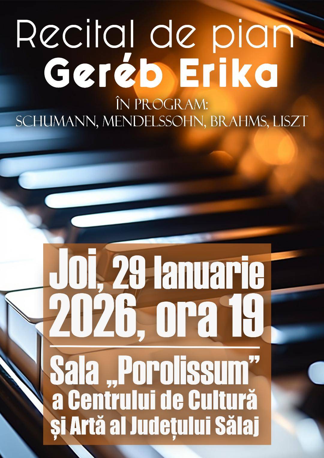 Sala „Porolissum”, Centrul de Cultură și Artă al Județului Sălaj, 29 ianuarie 2026, ora 19, intrarea liberă.