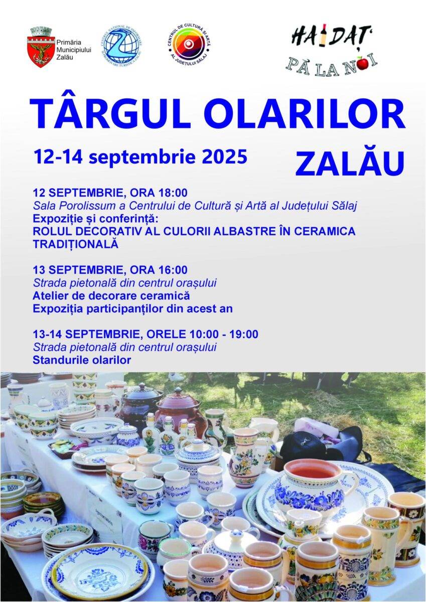 În cadrul evenimentului „Haidaț’ pă la noi”, susținut de Primăria Municipiului Zalău, va avea loc și în acest an Târgul olarilor la Zalău, în zilele de 13-14 septembrie 2025, eveniment oferit de Centrul de Cultură și Artă al Județului Sălaj. Ca și anii trecuți, programul mai cuprinde și o conferință tematică cu acces liber pentru public, intitulată Rolul decorativ al culorii albastre în ceramica tradițională, prezentările fiind susținute de etnografi și specialiști ai ceramicii populare, derulându-se vineri, 12 septembrie de la ora 18:00 la sala Porolissum a Centrului de Cultură și Artă (lângă Prefectură). Conferința va avea un stand de expoziție cu piese ceramice de colecție ce ilustrează tematica prin aspecte sălăjene: ceramica de Zalău, Deja și de Șimleu Silvaniei.